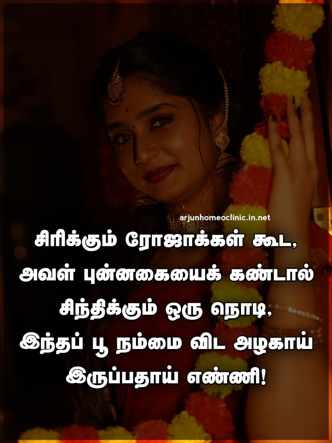 சிரிக்கும் ரோஜாக்கள் கூட, அவள் புன்னகையைக் கண்டால் சிந்திக்கும் ஒரு நொடி, இந்தப் பூ நம்மை விட அழகாய் இருப்பதாய் எண்ணி!