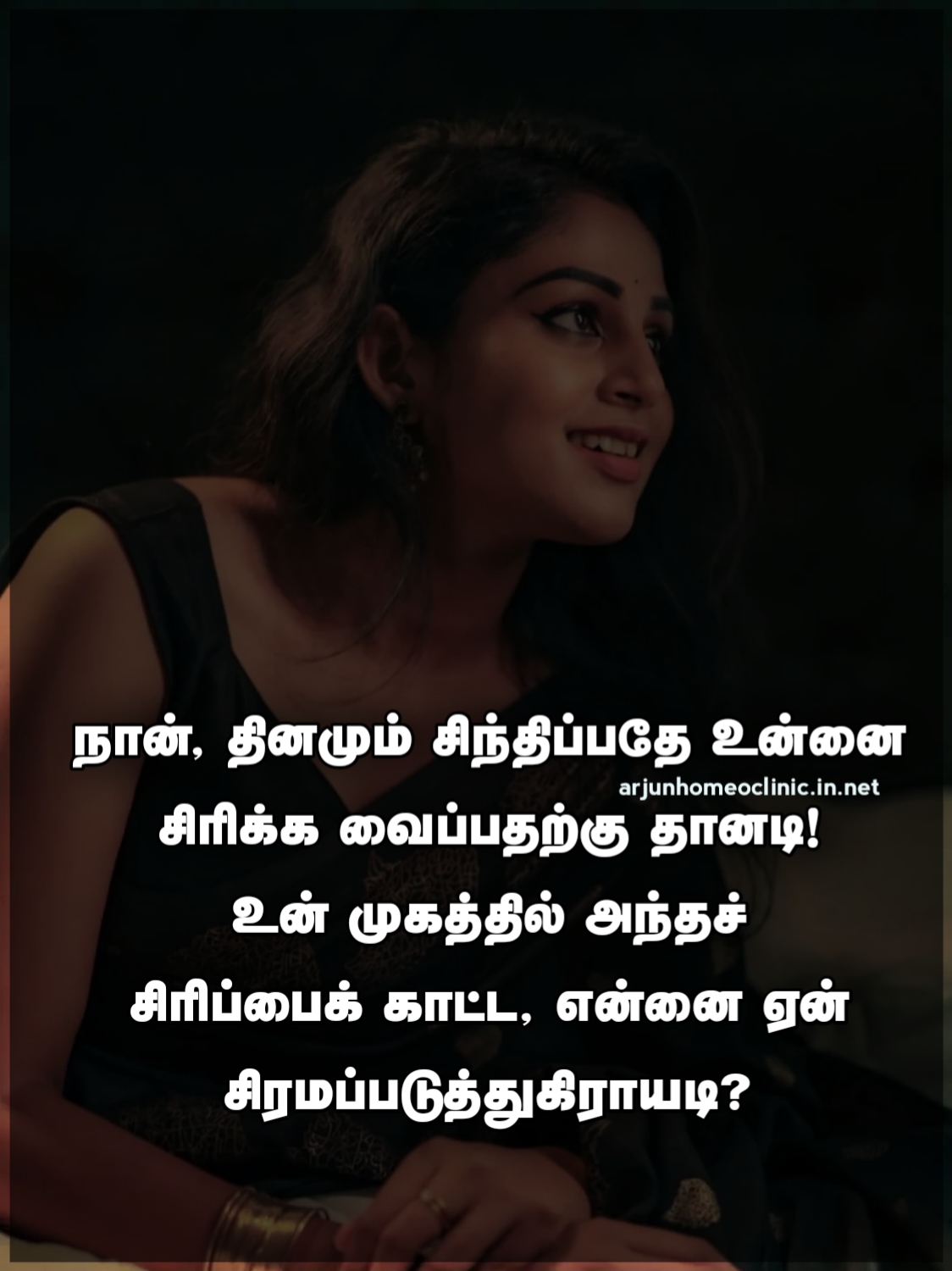நான், தினமும் சிந்திப்பதே உன்னை சிரிக்க வைப்பதற்கு தானடி! உன் முகத்தில் அந்தச் சிரிப்பைக் காட்ட, என்னை ஏன் சிரமப்படுத்துகிராயடி?