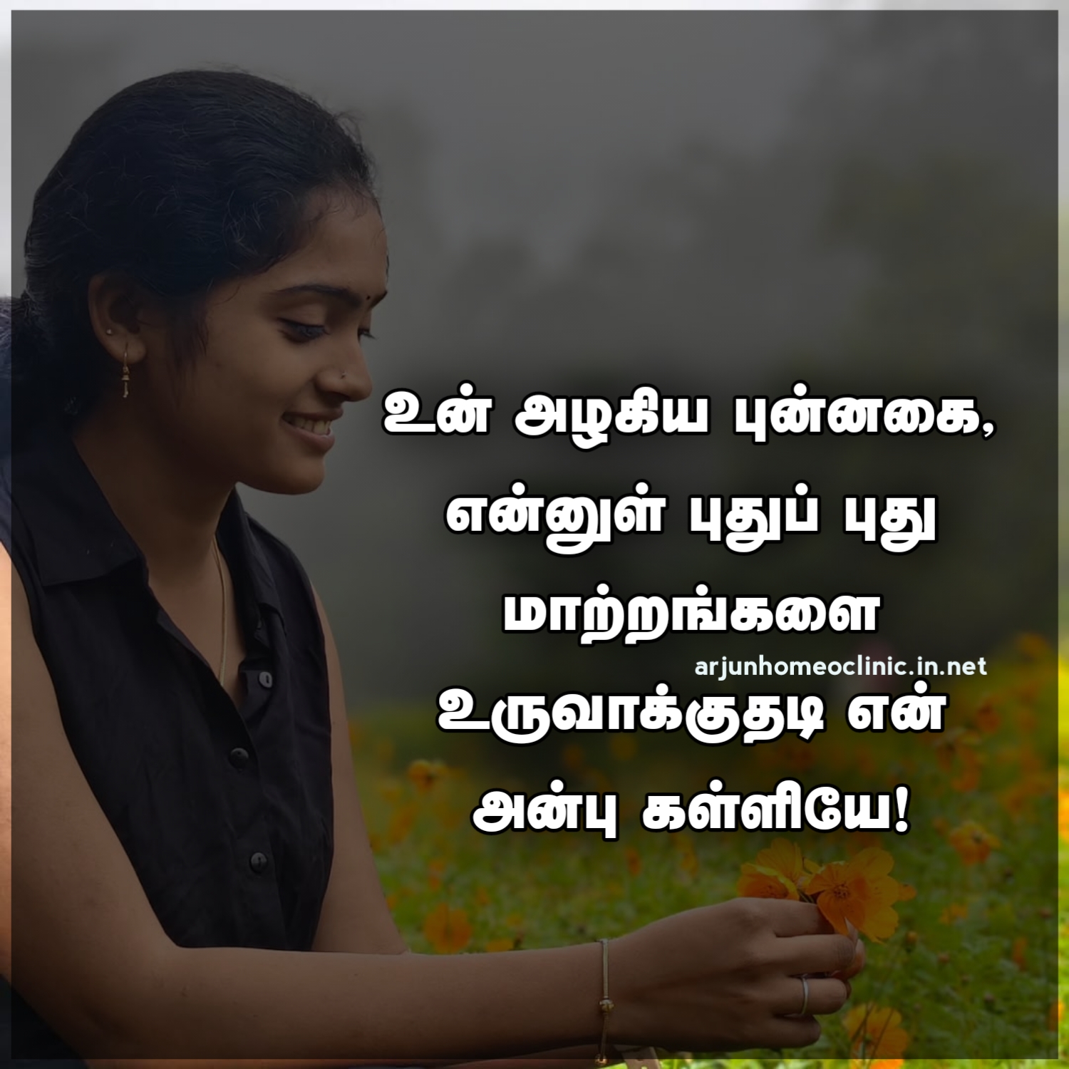 உன் அழகிய புன்னகை, என்னுள் புதுப் புது மாற்றங்களை உருவாக்குதடி என் அன்பு கள்ளியே!